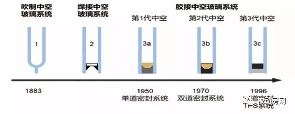 中空玻璃的工艺进化源自密封技术的创新。图2给出了中空玻璃不同密封结构的发展历程。中空玻璃从19世纪的吹制及焊接发展到20世纪的胶封工艺后,才使中空玻璃的推广使用和工业化生产进入了一个新时代。