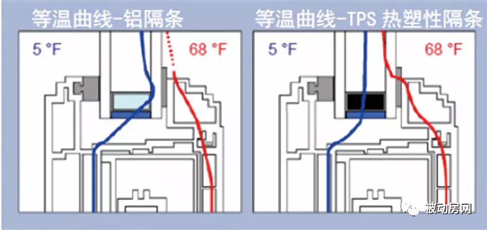 图4 传统槽铝式中空玻璃与TPS中空玻璃的